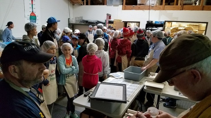 This is from the end-of-the-table view, showing my mom, sister, and the weigher and sealer. We talked quite a bit during our time there, and it was really fun. (photo cred: KAHBA)