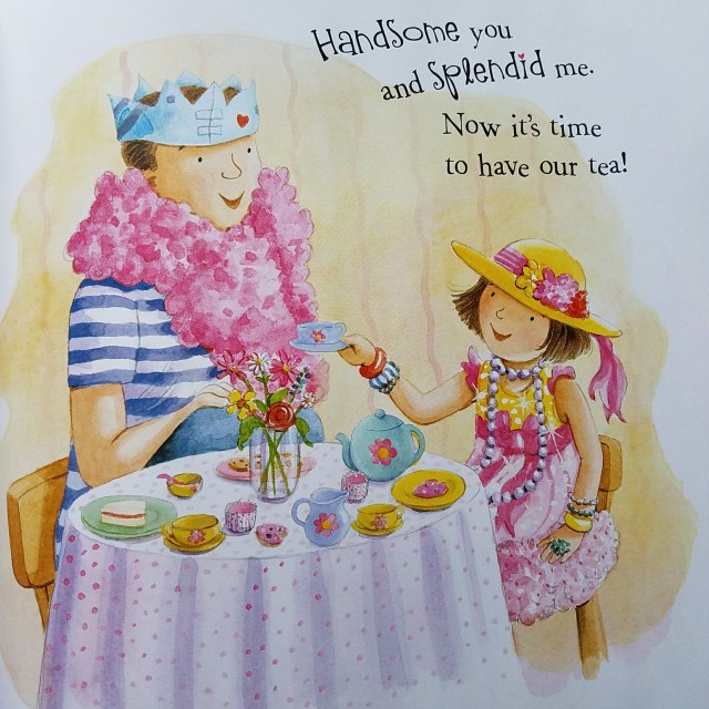 What is it about: The book is about the girl having a tea party with her dad. The girl likes spending time with her dad.