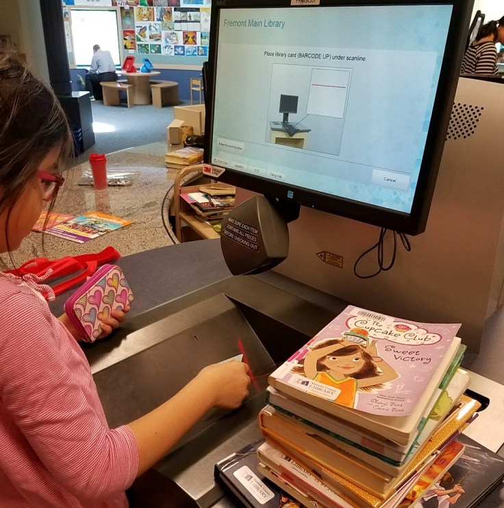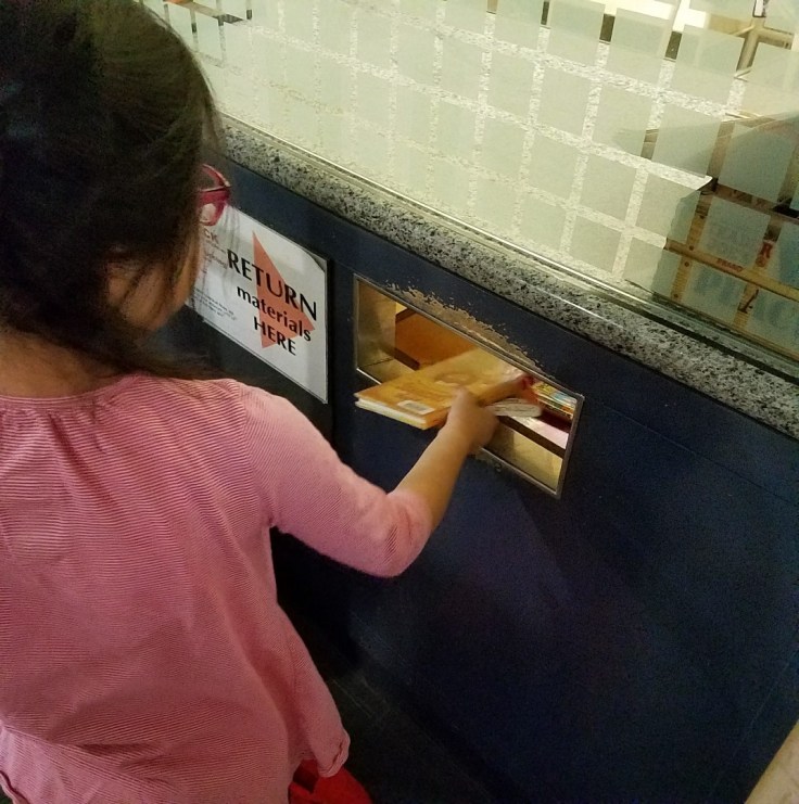 Instead of electronic book returns, they have a hole in the wall that you drop your books in. We returned our books that we got from Castro Valley Library in the slot.