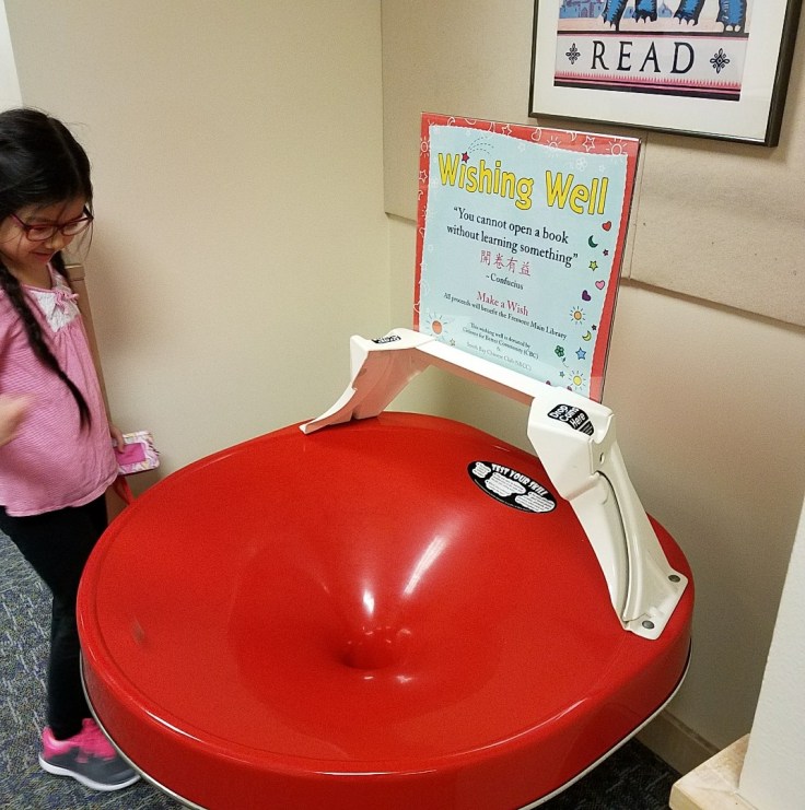 Emily put a coin into the wishing well. It’s kind of loud, but I like the quote.