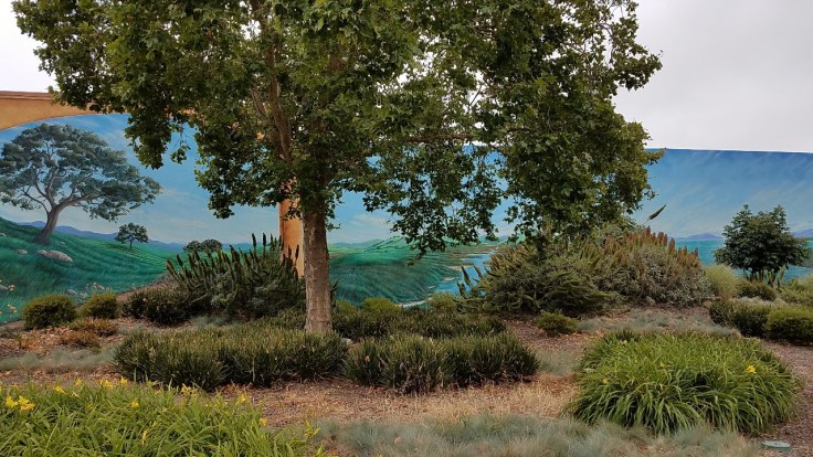 The El Taquito Mural was outside of a restaurant, so that’s why we were in a parking lot. I like the graceful curves in this mural. If I were to paint a mural (I never will!) I would have no idea where to paint these tiles so they lined up correctly.