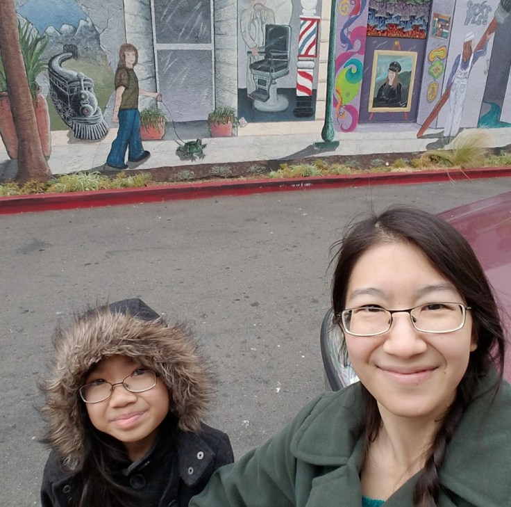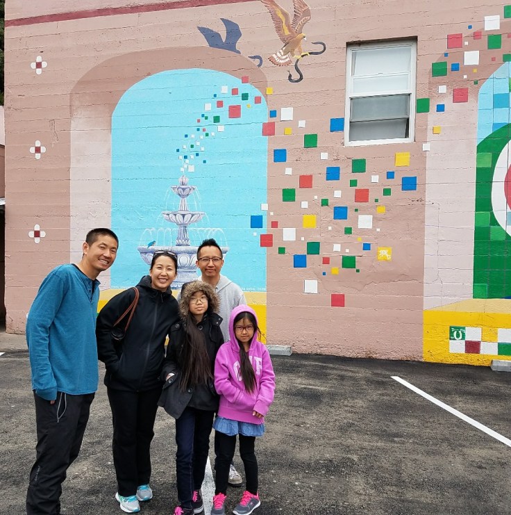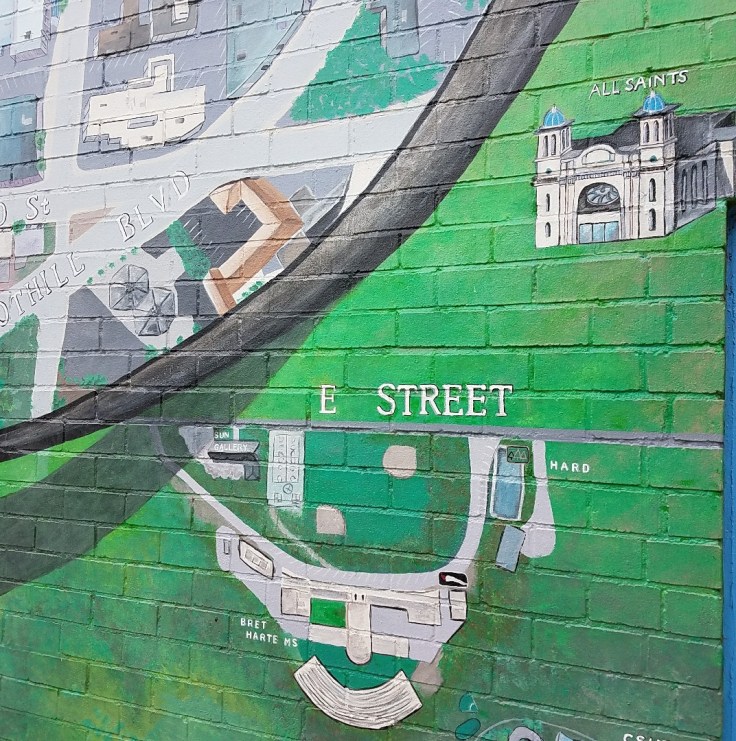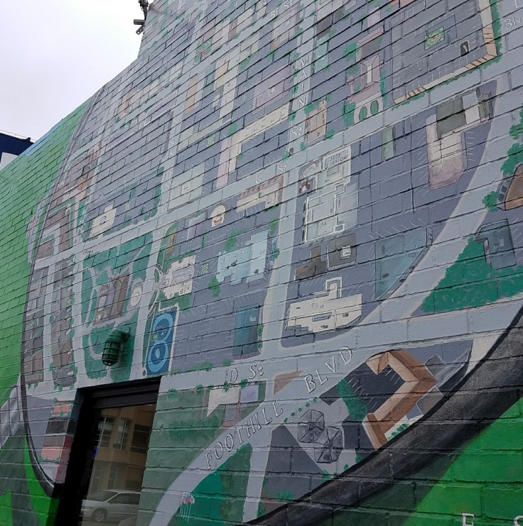 We only made it to 9 of the 12 murals this day. The murals we missed are #10 Hayward Main Library Book Drop Boxes, #11 Grand Terrace Sund Wall Mural, and #12 Jackson Street Southern Retaining Wall Mural. There are also dozens of utility boxes, more murals around the city on walls and under freeways, as well as murals at (almost all) the schools in Hayward.