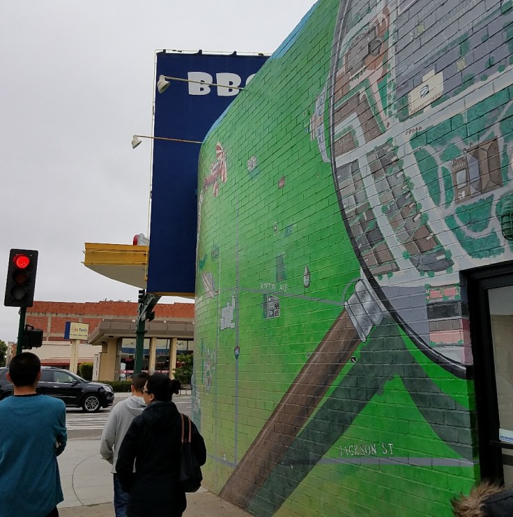 This was supposed to be the 2nd mural on the self-guided tour, but we saw it first because we parked our car in a parking lot nearby. This mural shows how cars changed Hayward and started an era of rapid growth in Hayward’s history.