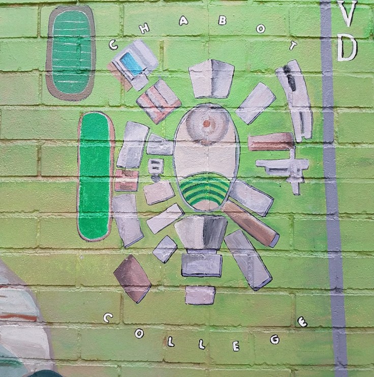 The first thing I thought when I saw this mural was, “Why is there a huge soda can being dumped on this mural?” and “Why does this mural show unusual things?”