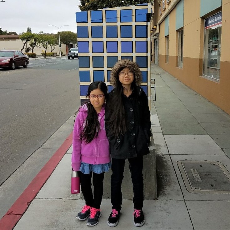 Our last photo on the list was this utility box. My favorite color is purple, so I took a picture in front of it with my sister.