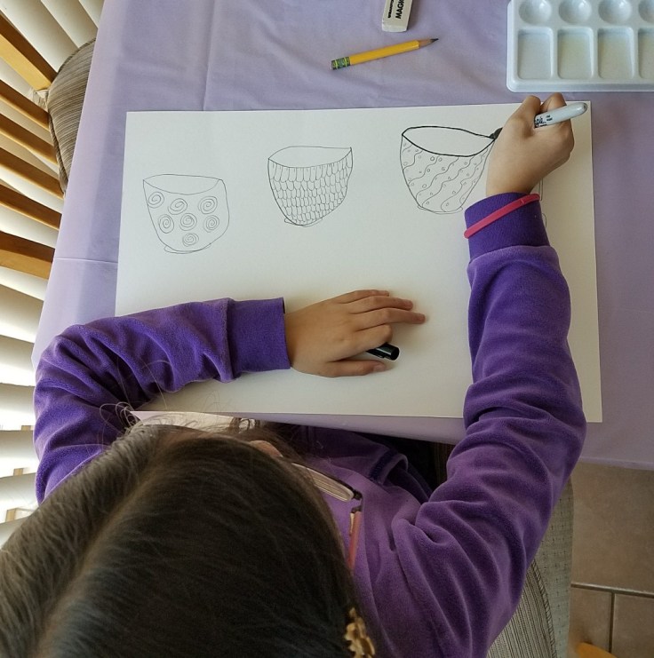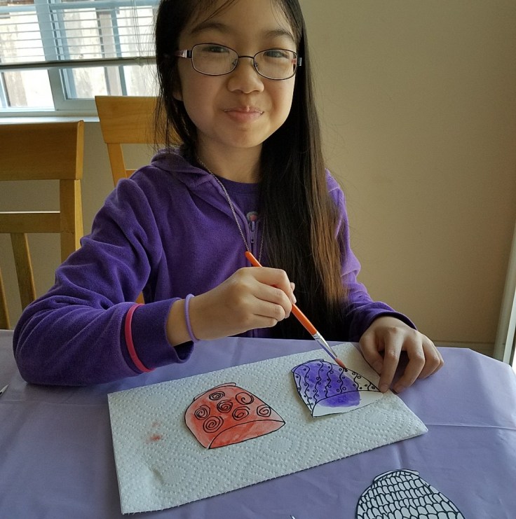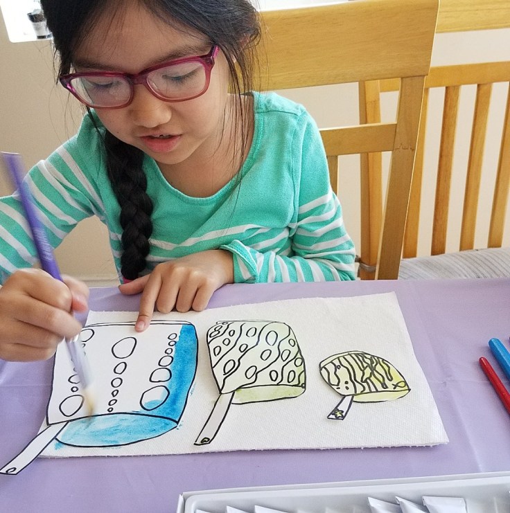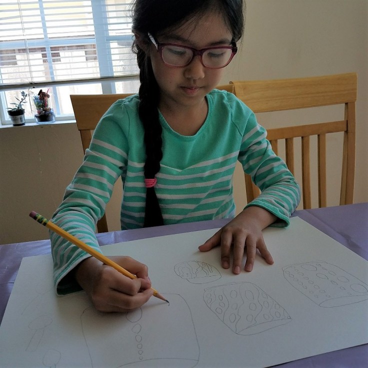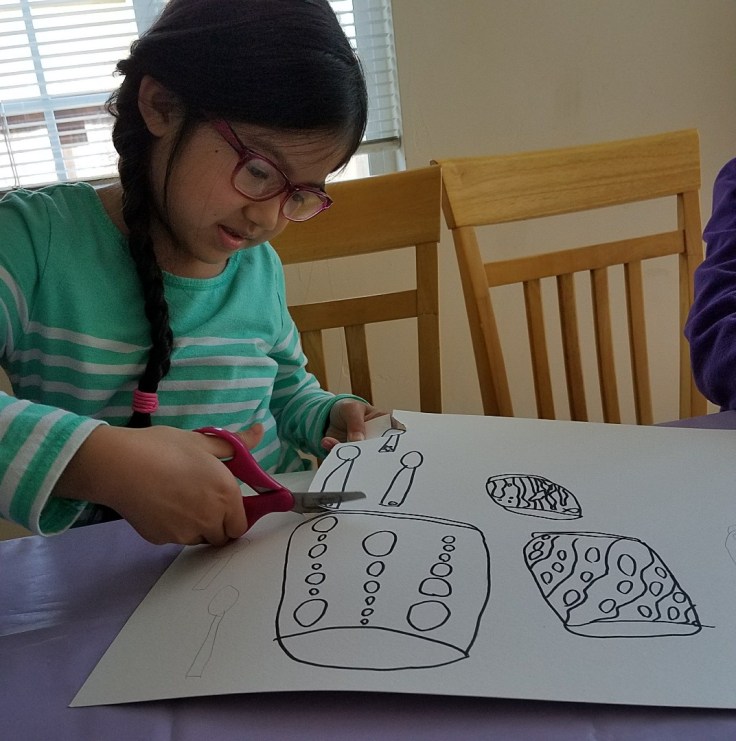 We were excited about our third art project from Home Art Studio (2nd Grade) because it had many parts – drawing, cutting, painting, and gluing.