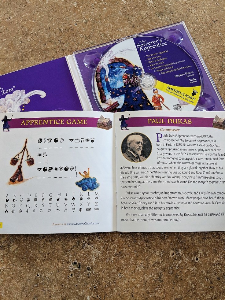 We got The Sorcerer’s Apprentice a long time ago, but just recently rediscovered it! It is perfect to get kiddos interested in music. If you think about the musical scores in your favorite movies, you’ll remember the difference that it makes to draw you into the story. Imagine if there was no theme song to open up your favorite TV show or no dramatic sounds during a slow-mo scene as the football team scores the game-winning touchdown…or something like that…I only watch the games for game day food. :p It’s fun to explore different types of music. We’re passing this on and hoping to get the whole collection.