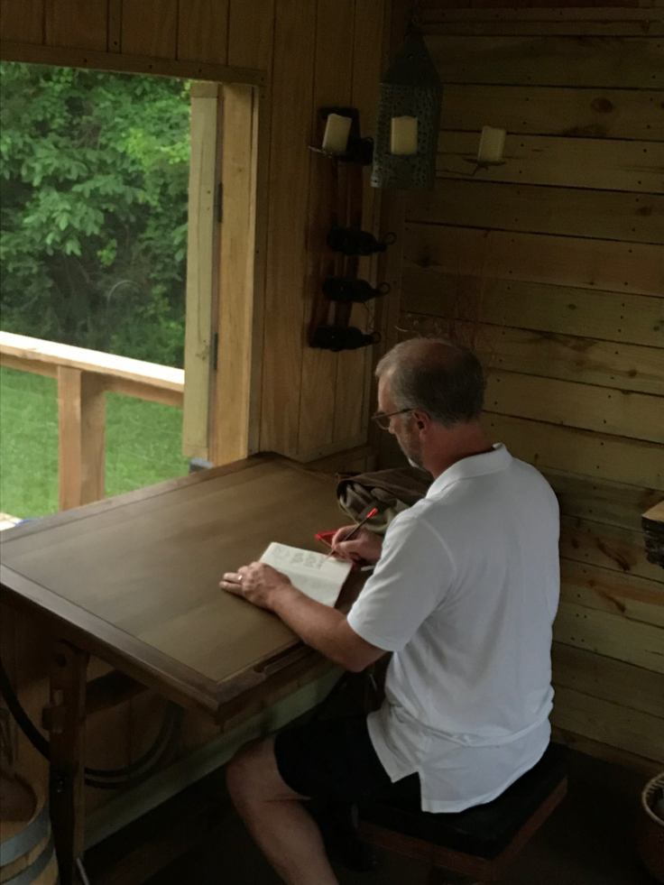 I sit down at my desk with a pencil in my hand. Then I pray and listen to music by Kari Jobe. I also read the Psalms and that seems to help get me started. I usually start by writing a prayer: Let the words of my pencil and the meditations of my heart be acceptable in your sight, oh Lord.