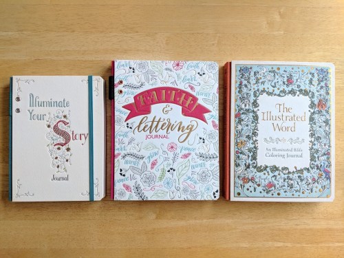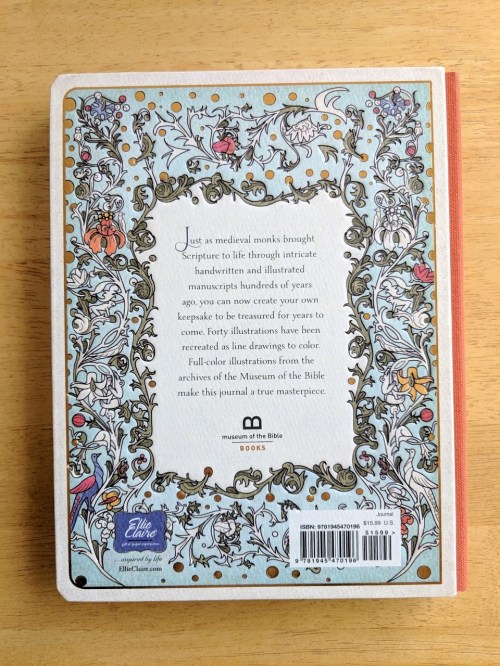 The Illustrated Word: An Illuminated Bilbe Coloring Journal is a little different from the other two journal. This one focuses on illustrations – forty of them to be exact! These old medieval-style illustrations have been recreated as line drawings so that we can color them the way we want. The full-color illustrations from the archives of the Museum of the Bible are mastery done and are also included in the pages of this coloring journal. I love the soft color and page in this book and are excited to color in the details of the pictures included. Like the other two journals, there are also quotes and lined writing pages for reflective thoughts.