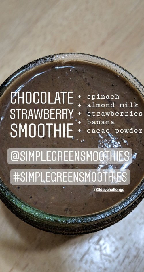 Link to Week 1’s recipes, shopping list, and more are down below. Each week has recipes for every weekday and we free style on the weekends. The images below are from our Instagram Story postings which is why they are vertical and tag Simple Green Smoothie. :p