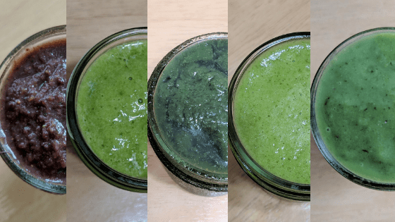 We may do a wrap-up at the end of the month, but for now, here’s a look at our “green” smoothies from Week 4 and some of our quick thoughts about each one. Sorry about the foaminess of the smoothies. They were just poured straight from the blender. Also, the color may not be appealing, but there is no correlation between color and taste. You’ll be surprised by which ones you’ll like. We will have more tips and recommendations soon!