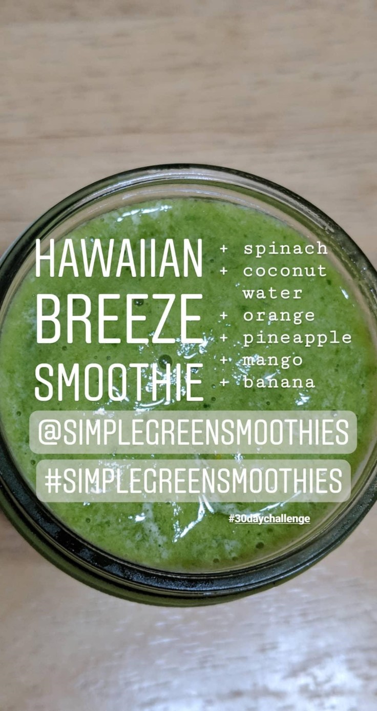 Link to Week 4’s recipes, shopping list, and more are down below. Each week has recipes for every weekday and we free style on the weekends. The images below are from our Instagram Story postings which is why they are vertical and tag Simple Green Smoothie. :p