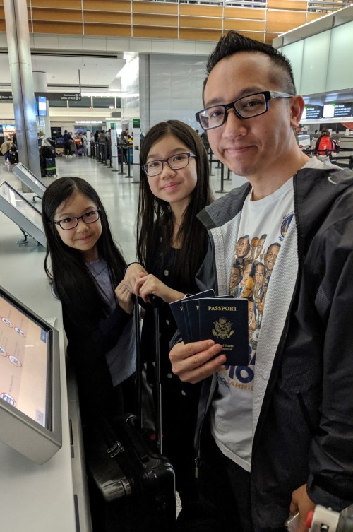 We are scanning our passports to get checked in to get our boarding passes. The girls’ passports are expiring in a few months so we couldn’t check them in online the day before.