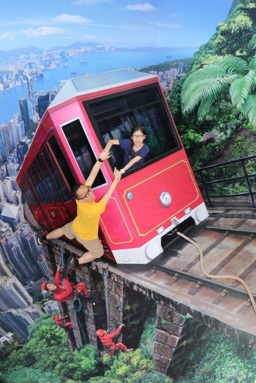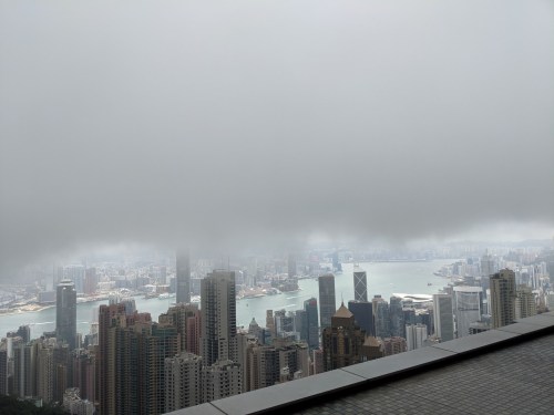 It was pouring rain with gusty winds and some thunder when we woke up. Fortunately, it didn’t stay this way for the entire day. We got to leave early and took the metro. It’s very breezy in there. And we also took a bus that was jerky as we were going around to the top of the peak. There’s a tram that goes up but they are doing an upgrade so the trams were closed. Luckily, we got to sit down for a while once we arrived at the Peak Tower. There was a fun 3D adventure that was free which is like the 3D Museum in San Francisco. There were about 6 floors of escalators at the Peak Tower. You’ll see why this is important if you keep reading. We ended up not going to the Sky Terrace for a view because it was way too foggy that day. We did see some of it from Wildfire+ which is a pizza place where we ate lunch.