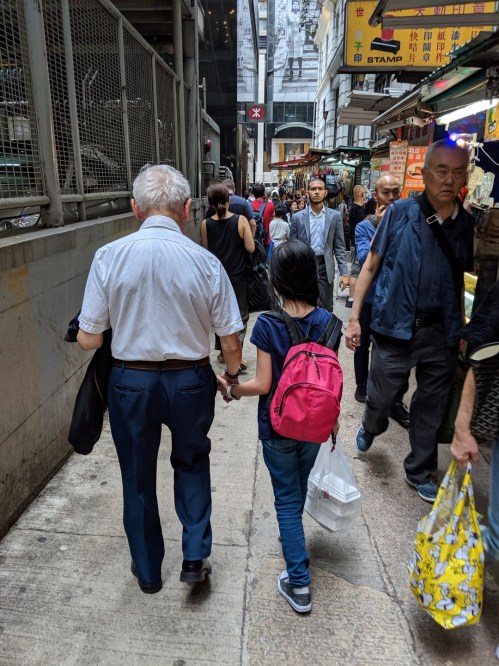 After getting down from Victoria Peak, we went to look for an alley where you can get stamps. It is a special chop stamp made with our last name. While we waited we went to get some cold drinks and air conditioning at McDonald’s. Then, we went to take the world’s longest outdoor covered escalator system. Actually, they called it a travelator, and it was slanty, so really it wasn’t one full staircase like normal escalators. We had to walk super far to Yat Lok Restaurant which is well known for its roasted goose. Since there is only laundry service at the hotel, Daddy went to the laundromat to do our laundry. While he waited, he went to visit the Temple Street Night Market. Today was probably the most escalators I’ve ever walked in my entire life combined.