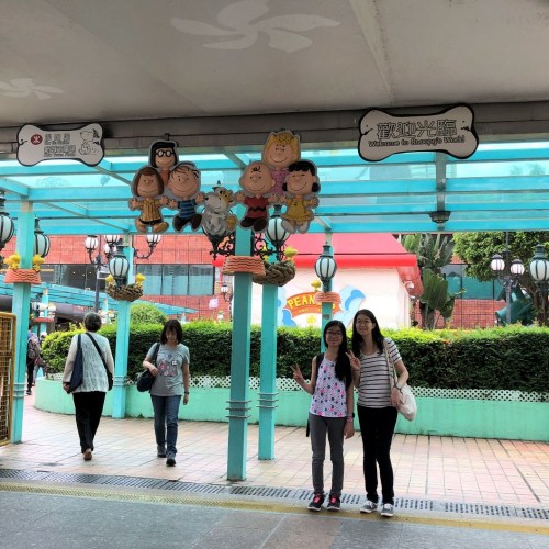 Next, we drove through the longest tunnel in Hong Kong – Tate’s Cairn Tunnel, and kept going toward the Hong Kong-China border. The army guy in his green camouflage outfit told us to not go any further. On our way back, we stopped in areas you don’t normally tour. We went to the shopping district after that. People from the mainland like to go to Hong Kong to get this stuff at a cheaper price. This also goes for tourists, which is probably why Chinatown looks the way it does. And in typical Moy fashion, we wanted to go check out a library. Puns always intended. It had English and Chinese books. It had a study room, coffee corner, media room, music section, newspaper reading room, and more! Our last stop was Snoopy’s World. It didn’t cost anything to get in and was a fun place to take photos. Finally, we took the bus back to our hotel and got McDonald’s for dinner. It has been interesting and fun to try new things that we don’t have on our American menu, like Shake Shake fries and chocolate pies. They have a few other things that don’t seem as “fast food”-like as our McDonald’s.