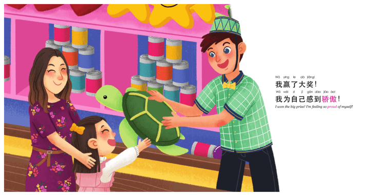 How I wish these books were around when I was young! My parents and grandparents spoke Chinese (Cantonese and our village dialect) to us but we never learned to read Chinese characters. There didn’t seem to be many bilingual books with both English and Chinese. For kids, there were lots of vocabulary books with a visual and the Chinese characters or books with just the Chinese in it. The English-Chinese dictionary was useful but not much fun to read unless you wanted to recite a list of words. I love Mina’s stories. This will pique children’s interest to see that they can relate to the character and what’s happening in the book. I hope there will be more stories added to the series and more characters introduced.
