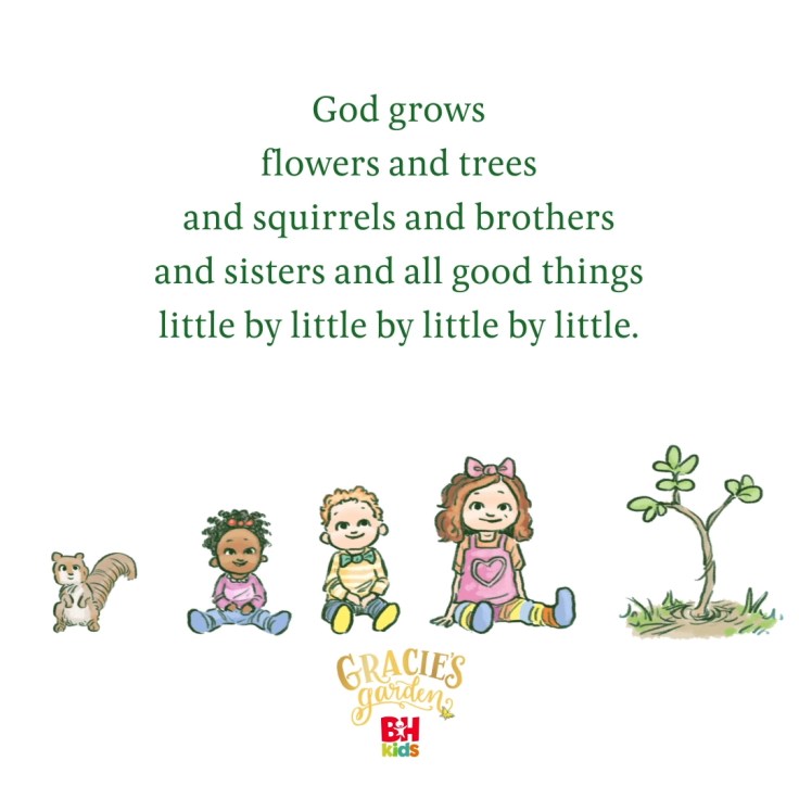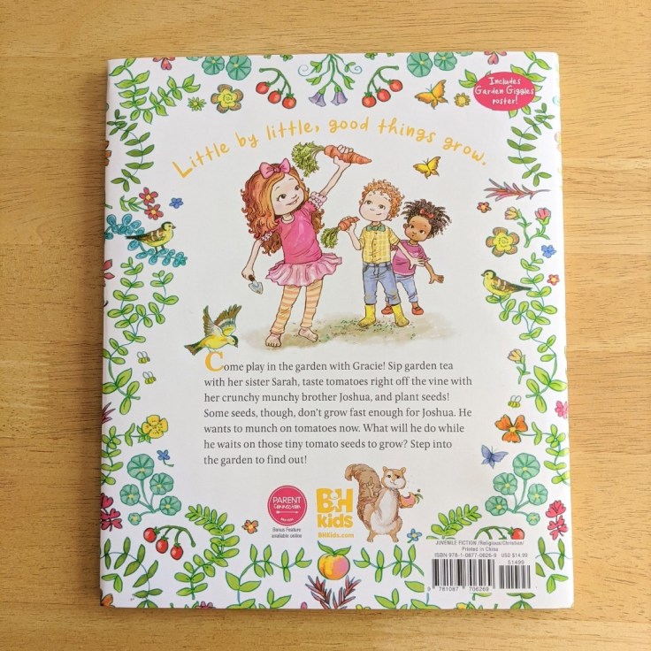 Melody (age 13): I’m sure lots of us have read the Parable of the Mustard Seed. In Gracie’s Garden, they talk about seeds, and how God helps all the plants grow! God created plants, and He helps them grow! But it takes time and patience to help the tiny seeds grow into big strong plants. In a way, we are like seeds too: sprouting and growing and reaching other people’s lives with God’s word all around us! Wonderful illustrations!