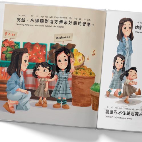“What a wonderful day to go to the farmers’ market! Mina and Leah, 2 adorable sisters, enjoy all the sights, sounds, smells, touch, and tastes of what their local farmers’ market has to offer. Explore all 5 senses with this adorable family and learn some new Chinese vocabulary. Learning chinese has never been this fun. A free audio reading is available in Mandarin.”