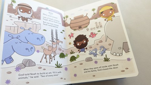 This book for little ones tells the story of creation, some familiar people of the Bible, as well as the birth, death, and resurrection of Jesus. The illustrations are lovely and help to tell the stories well.