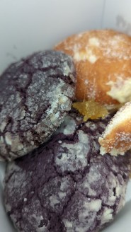 We got a later start than we had planned and most of the tables were taken by the time we got there so we opted to take it back home (aka our pretend Airbnb 😛) to eat. Lots of tables freed up after we had already ordered. If we were on vacation, there are lots of breakfasts we like to eat in our hotel room so we can multi-task getting ready to be out all day. We wanted to keep it light since we are wannabe foodies since we’d be eating most of the day. Trying new foods or foods from different places is something we do on our trips. We have been to Denica’s before but we have never had their ube pancakes and guava pancakes. The Ube Pancakes were purple yam pancakes with ube coconut sauce, Denica’s whipped cream, banana, and mixed berries. The Pink Guava Pancakes were guava chiffon pancakes, with tropical pink guava sauce, Denica’s whipped cream, and fresh strawberries and kiwi. We also ordered Ube-Bae cookies, a Mango malasada, and a Pineapple Jam malasada. (I think the malasadas are from Bay House Cakery.) Tip for Denica’s: It’s not too bad, but go earlier than later. The parking lot fills up quickly.