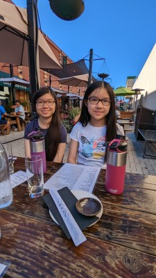 Dinner was definitely a treat after our short trek. We got to the Castro Valley Marketplace right before the main dinner crowd but all the regular seating was taken. Good thing we had planned to go to Akemi already. It’s not new but new-ish since the CV Marketplace opened at the beginning of the pandemic, and then had a grand re-opening last year. It didn’t take too long for our order to be taken and for it to come out. We ordered our usual plus their namesake roll. Norm likes to get Amaebi (sweet shrimp). The girls enjoy Inari (sweet fried tofu) Kappa maki (a cucumber roll). I like a Lion King roll (crab, avocado, top: salmon & garlic sauce, torched, tobiko). The girls also decided to try Philadelphia roll (salmon, avocado, cream cheese) with the raw salmon. Sometimes they have it cooked. The namesake roll Akemi (yellowtail, tuna, salmon, avocado, cucumber wrap, ponzu, kewpie) was very uniquely presented. Everything was fabulous. If you want to go a bit spendy in good old CV and you like sushi, Akemi is amazing. (We really like all the places that have sushi in CV.) They had a pop-up shave ice stand on the Paseo this weekend. Sometimes there’s music and sidewalk chalk art. Tip for Akemi: If you don’t want to eat on the Paseo at the Castro Valley Marketplace or you know it’ll be crowded, you can also order online or pick up some Grab-N-Go boxes.