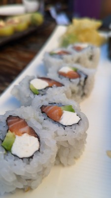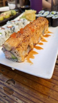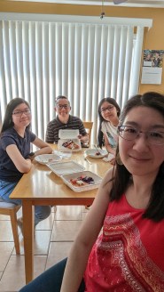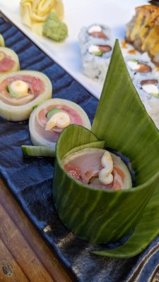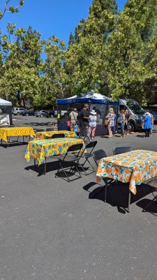 Dinner was definitely a treat after our short trek. We got to the Castro Valley Marketplace right before the main dinner crowd but all the regular seating was taken. Good thing we had planned to go to Akemi already. It’s not new but new-ish since the CV Marketplace opened at the beginning of the pandemic, and then had a grand re-opening last year. It didn’t take too long for our order to be taken and for it to come out. We ordered our usual plus their namesake roll. Norm likes to get Amaebi (sweet shrimp). The girls enjoy Inari (sweet fried tofu) Kappa maki (a cucumber roll). I like a Lion King roll (crab, avocado, top: salmon & garlic sauce, torched, tobiko). The girls also decided to try Philadelphia roll (salmon, avocado, cream cheese) with the raw salmon. Sometimes they have it cooked. The namesake roll Akemi (yellowtail, tuna, salmon, avocado, cucumber wrap, ponzu, kewpie) was very uniquely presented. Everything was fabulous. If you want to go a bit spendy in good old CV and you like sushi, Akemi is amazing. (We really like all the places that have sushi in CV.) They had a pop-up shave ice stand on the Paseo this weekend. Sometimes there’s music and sidewalk chalk art. Tip for Akemi: If you don’t want to eat on the Paseo at the Castro Valley Marketplace or you know it’ll be crowded, you can also order online or pick up some Grab-N-Go boxes.