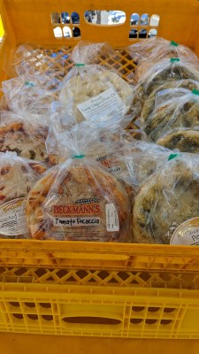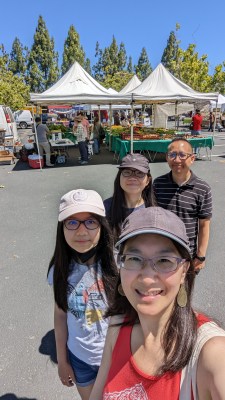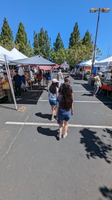 We haven’t been to the farmers’ market in a long time. We got our sunscreen on and walked there. A few years ago, we won a Halloween photo contest and were able to try items from every single vendor there. Some are no longer there, but it brought back memories of the yummy, local foods we tried. Norm got The Cutest Gift Box (3pc) from Bun Bao. “Three different types of buns in a box. Upon opening, you will find Panda Red Bean Bun, Piggy Cream Custard Bun, and Chicken Cream Custard Bun with the cutest presentation.” I chose tomato focaccia from Beckman’s Bakery, which also has the most amazing granola. Melody chose a Strawberry Cream Cheese Kouign Amann (similar to a puff pastry) from Starter Bakery. Emily got some delicious white peaches which we ate later in the week with vanilla ice cream. I can’t remember the vendor. Eco-Tip for the Farmers’ Market: Bring reusable bags for all your fresh, local-ish, small biz purchases.