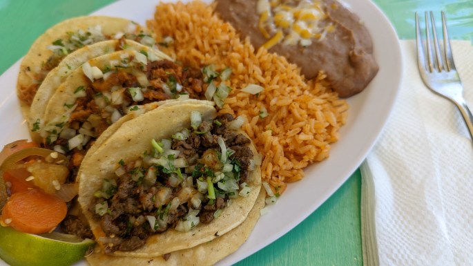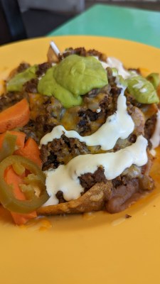 Norm and I ordered from Portales Taqueria for lunch. I can’t believe we haven’t tried this place before. We have heard good things and also wanted to give them our business since they had a lot of problems with smashed windows last year. Norm had the Super Nachos with carne asada, cheese, sour cream, and guacamole. I got the Taco Plate with three tacos/proteins (pastor, pollo, carne asada, extra onions) with refried beans, rice, and some veggies. There is seating indoors and two tables outside. It only took 10 minutes for our food to be served. It was a late lunch for us but there was quite a bit of business after we arrived. Eco-Tip for Portales: We didn’t have leftovers since we ate a light breakfast, but if you have leftovers, bring your own containers for them.