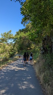 Since there’s a fee for parking, we usually try to find street parking, and we were able to get a spot as someone was leaving. We weren’t sure if we wanted to do any boating but it was fairly hot when we got there so we decided not to rent a boat. It was pretty crowded but that’s not surprising for a Saturday. As usual, we saw lots of folks picnicking and BBQing. There were many boats out when we got there and quite the line formed to rent them when we were leaving. We took a usual route which meant there were lots of people ahead of us and behind us but most of the time, it wasn’t too crowded on the path. There were one or two bicyclists, which is fewer than on other days we’ve been there. We enjoyed a lovely walk, even though it was a bit hot, and conversation. The bonus was that we all hit our steps goal for the day. There were lots of people enjoying a cold treat from the Lake Chabot Marina & Café. We also saw a few people using the outdoor Fitness Zone which has six interactive exercise machines. There are bathrooms along the main path. If you want to walk all the way around, plan for it to spend 4-5 hours at the park at a casual pace (this is what we saw on a sign but have not yet gone all the way around). There are small ups and downs. Tip for Lake Chabot: Wear sunscreen (unless it’s the wintertime and rainy, then bundle up) and bring water.