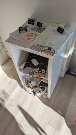 Our last stop was at this cute new-ish bakery cafe. We each picked out a treat – tiger sugar macaron for me, corgi passionfruit macaron for Emily, a strawberry cream puff for Melody, and pineapple macaron for Norm. It’s a really cute shop and there is outdoor seating. You can also order drinks, other desserts, cakes, and cute merch. It looks like they were doing a shoot for something new that’s coming, or maybe just for the socials. If it’s something new, you heard it here first. Tip for Always Yours: If you really want to get a certain treat, go early in the day. Most of the macarons were cleared out by the time we got there. It was an hour to closing time.