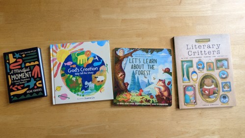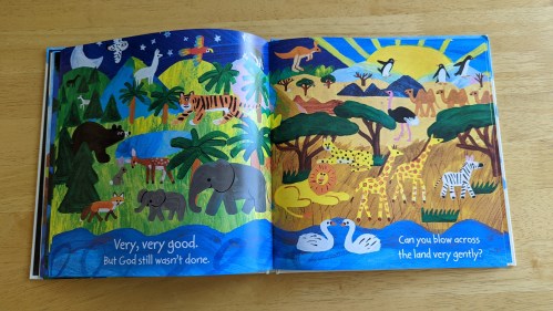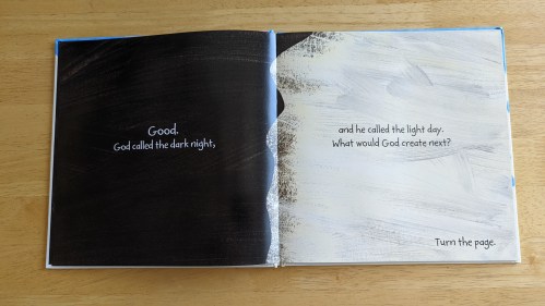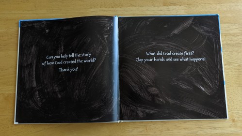 “An interactive picture book that uses bold conceptual art and easy-to-understand directions to keep little hands busy, and connects children to the story of God’s creation of the world.” Kids will love this one! They can follow instructions to do fun motions with the book to read and hear the creation story.
