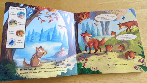 “Let’s Learn About the Forest is an interactive oversized board book that encourages little ones to use their imaginations and power of discovery to find the different animals and items in the forest God created. As they do, they will also learn interesting facts about the animals and their habitats.” The illustrations are really cute. There are bite-size fun facts that help us all to learn a little more about our forest friends. We also love a good seek-and-find book.