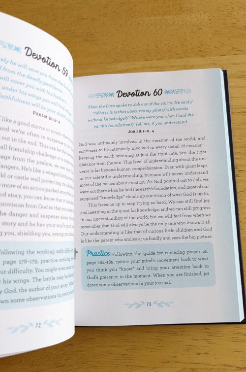 “A Mindful Moment is a teen devotional that explores how to let go of negative emotions and restless thoughts and find the still, small voice of God deep within.” This book has 150 short devotionals that can be done in 5 minutes. Each page has a Bible verse, a devotional section, and a practice. They address our emotions and how God is working in our lives. It’s important to acknowledge and be aware of how we are feeling about what’s happening around us.