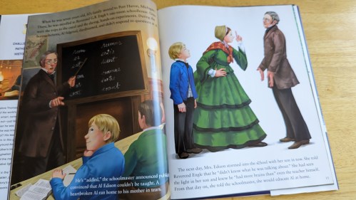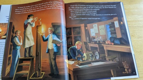 You something new every day. I haven’t read too much about Thomas Edison beyond the basic stuff they teach briefly in school so this was a fun read from a slightly different view of him as a kid to adult. I think kids who read this book will be able to relate to Thomas as they learn about his curious nature. But we also see a different side of how this cause tension in the classroom and how his mom ended up having to be his biggest supporter and advocate. I enjoyed the Author’s Note at the end of the book which tells more about Thomas’ mother. There is also a section with more books you can read to learn about his life. – Joyce, mom