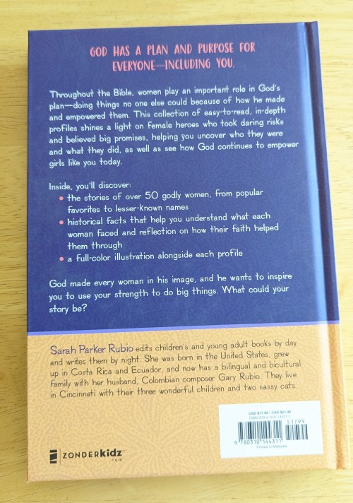 I really enjoyed this book, because it had good illustrations and art throughout the book, from talking about how each woman carried out God’s purpose and plan for her life, and the openers and hooks at the beginning of each person’s description (what they did/specialty). It also included verses at the beginning of each person’s story to read and to reflect upon. I liked that it highlighted and showcased people in the Bible who normally aren’t seen as much in society and gave reasons why. – Melody, age 16