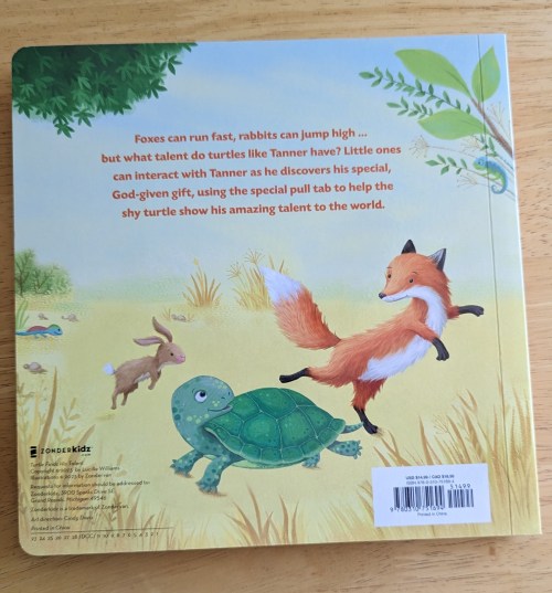 Tanner the Turtle and his mama remind us that no matter how much we realize that others may have talents or other things we might not have, God has blessed every one of His children with many things that we may take for granted, even small things! I loved this book and the simple message, with even cuter animal friends. – Emily, age 14