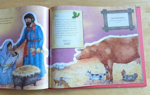 There are a few Christmas Bible stories in this book. Each section starts with a short reference to some verses, and then discusses what is happening in the passage. A main verse is highlighted in each section, and it ends with a “Love Letter from God,” what He would say to us based on what was happening. I really enjoy the illustrations that goes along with the stories. It helps me to imagine what was happening so long ago in the Bible times.