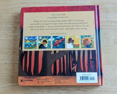 “Inspired by Psalm 1, Strong’s lyrical text reminds little ones that God loves them and gives them strength. From Sally Lloyd-Jones, the author of the bestselling The Jesus Storybook Bible, and award-winning illustrator Jago, this uplifting board book encourages little ones to find strength in God’s great love for them. Like a little tree planted by a fresh stream, children can grow strong and joyful when they draw close to God’s Never Stopping, Never Giving Up, Unbreaking, Always and Forever Love.”